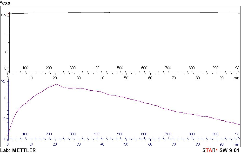 这是做的铁氧体的TG-DTA图,没有发生失重,DTA中有没有热量变化啊?