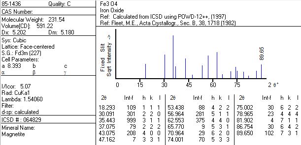 请问一种物质的标准XRD谱图怎么画出来的啊,比如说四氧化三铁