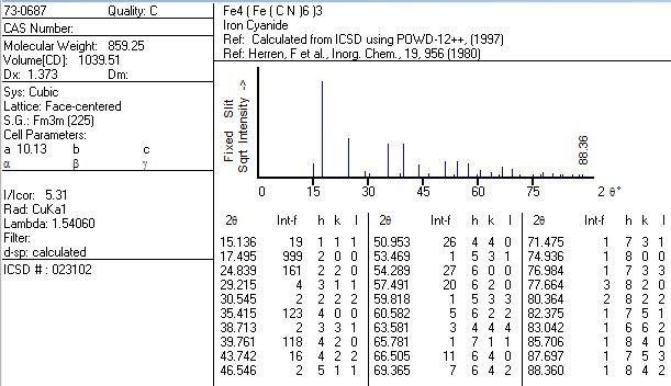 | 求助,跪求一个Au的XRD标准谱图,最好还有Fe3O4和Fe4(Fe3(CN)6),即(普鲁士蓝)的,谢谢啦 |