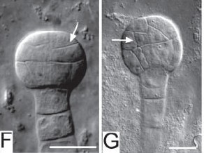 F、G图:材料(球形胚)透明后用微分干涉差显微镜照的