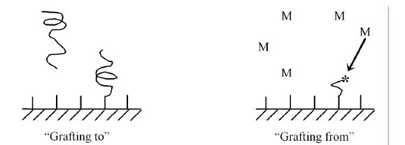 在界面上接枝聚合物,grafting-to和grafting-from怎么翻译比较好?最好是言简意赅的短语,谢谢!