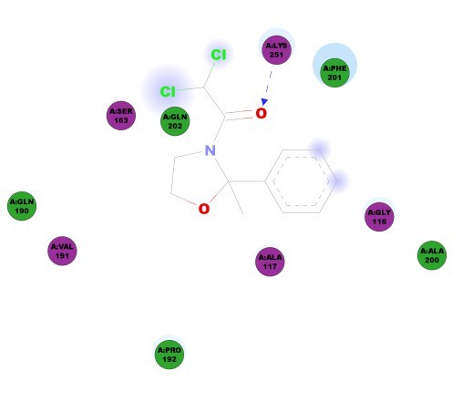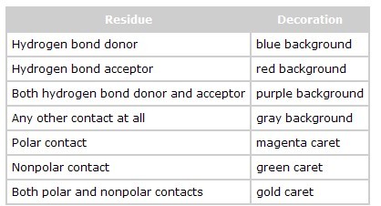 201残基下的蓝色底纹代表什么呢?谢谢各位了,还有红紫色箭头代表氢键,我的配体能形成这么多氢键么?