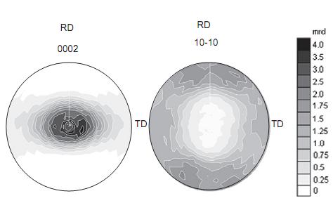 谢谢您的回复,这个Zr材原始织构如下图所示: 请问您的解释(HCP在拉压过程中都发生孪生(拉伸孪生与压缩孪生) 在拉伸区域发生沿着C轴延长的拉伸孪晶,晶格发生86°转动)的文献或者资料来源是?能否请您告诉我出处或者发一份给我呢?我的邮箱是zw603@uowmail.edu.au 我想把这个问题弄明白,不甚感激! |