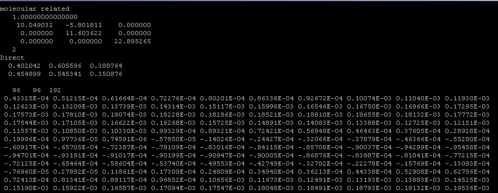 首先我觉得ECUT偏小,对于O,ECUT需要比较大。不过这里没有关系。 其次我觉得POSCAR的写法不太好,你可以看看OUTCAR里面的对称性分析,我觉得VASP可能会分析错误晶胞的对称性。最好写成 0.5 0.732 0 -0.5 0.732 0 0.0 0.0 1.0 这种格式。 试试? |