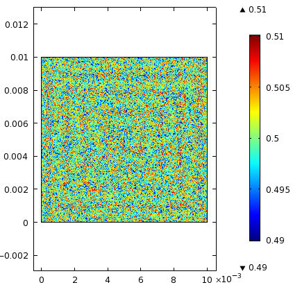 边长缩小之后结果的确是不对了,正确的结果是:初始因变量值小于0.5的最后应趋于0,初始因变量值大于0.5的最后趋于1(这是正确的结果,当边长较大时,比如1[cm],结果正确)。当边长取较小值时,比如这里的100[um],最后结果因变量值都等于0.5了。 我觉得就是在time=0时,初始条件(随机变量)没有被正确执行(边长较小时,见上面第三张图,正确的应该是[0.49, 0.51],而现在是[0.499, 0.501]),才导致了整个结果的不对 我是这样理解的,但不清楚为什么几何尺寸的改变会影响对初始条件的正确执行。 [ Last edited by Shoney on 2011-1-19 at 23:01 ] |
