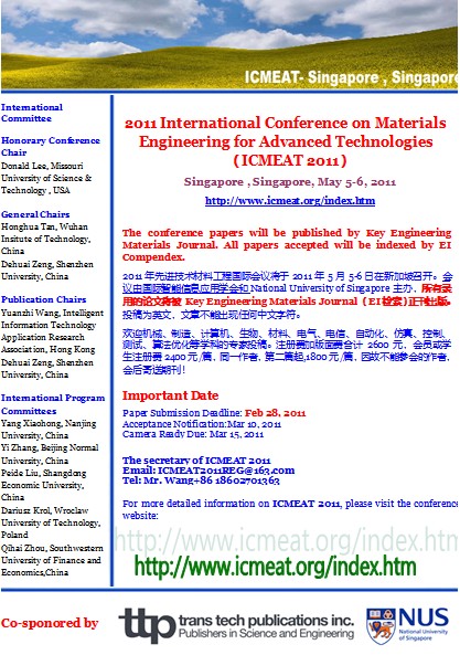 (2011-2-28) 【新加坡】2011年先进技术材料工程国际会议(EI源刊KEM期刊)