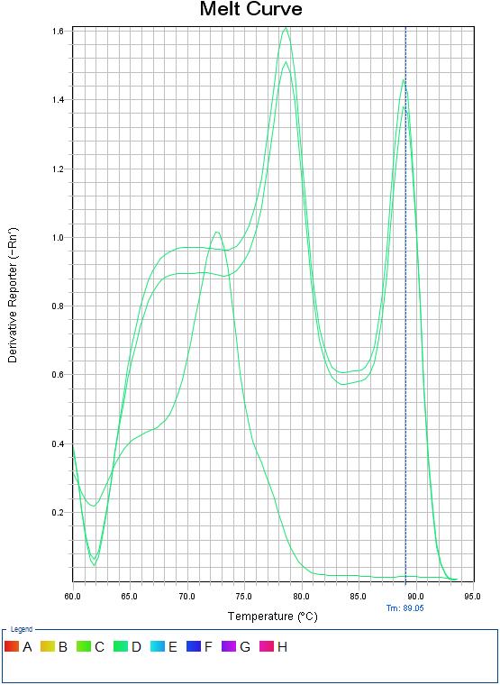 急求帮助。下面是我的目的序列: TGATATGCTTAAGTTCAGCGGGTATCCCTACCTGATCCGAGGTCAACTGGAGGGTGTGGTGGTTTCACGGCGTGACCGCCTCCGCGCTCCCGGTGCGAGGTTCTCAGCGAGCTACTGCGCAGGGGAGCCGCGGCGGGGTCGCCACTGCGTTTAGGGGGCGGCGCGGGGCCGTGACCCCCAAGGCCGGGCCCCGCCGCCGCGAGGCGGGGGGCTCGAGGGTTGAGATGACGCTCGGACAGGCATGCCCGCCAGAGTGCTGGCGGGCGCAATGTGCGTTCAAAGATTCGATGGTTCACTGAATTCTGCAATTCACATTACTTATCGCATTTCGCTGCGTTCTTCATCGATGCCAGAACCAAGAGATCCGTTGTTGAAAGTTTTGATTCATTTGCTTGCTTCTTGACTGAGAGATGCCACTGCGACAGGAGGGTCTGGGGGTCCTCCGGCGGGCGCCCTGGTCCGGGCCCTGGGGCGCCGGGGCGGTCCCGCCGAGGCAACTGCTGTGGTGTTCGCAGGGGGTTTGGGAGTGGTGACTCGATAATG;选用的引物为GTCAAGAAGCAAGCAAAGGAATC与TCAACTGGAGGGTGTGGTGG,在上述序列中已用括号隔开。我的实验目的是同属物种真伪鉴别,用这对引物只有正品获得目的条带,伪品没有,问题是均存在非特异扩增,从电泳图上来看应该是引物二聚体导致的。现在用SYBR实时荧光PCR来定性,实验结果一致,溶解曲线图谱中引物二聚体的峰明显,倒是不影响结果判断。Tm值阴性71.7°,阳性78.3与88.7°;Ct值阴性34,阳性19. 因为用探针法时间来不及,想请教大家,避免引物二聚体我该怎么将现有的引物加以改进呢;还有阴性和阳性非特异扩增的Tm值差异是什么导致的呢。 |