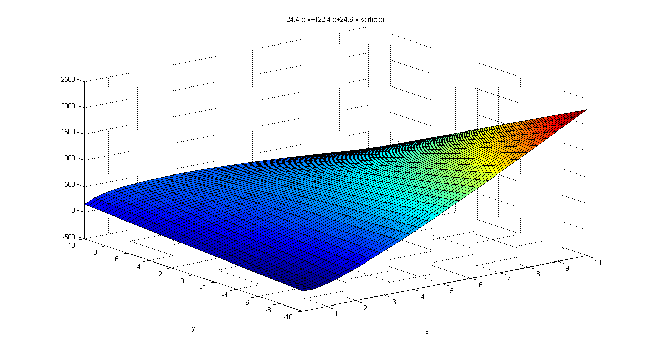 z=-24.4*X*Y+122.4*X+24.6*Y*sqrt(pai*X)