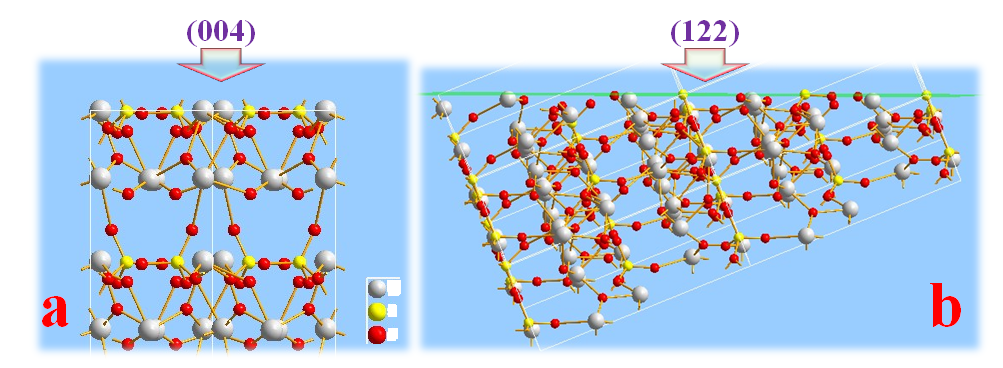 对于做材料的人来说,XRD分析是十分重要的一种方法,但有多少人真正能充分利用XRD数据呢?比如从下面这幅图,你可以得出哪些结论呢?——检验下自己到底对XRD懂多少... 注:图中(122)面与(004)面峰相对峰强变化较大,下面给出这两个晶面的结构示意图: |