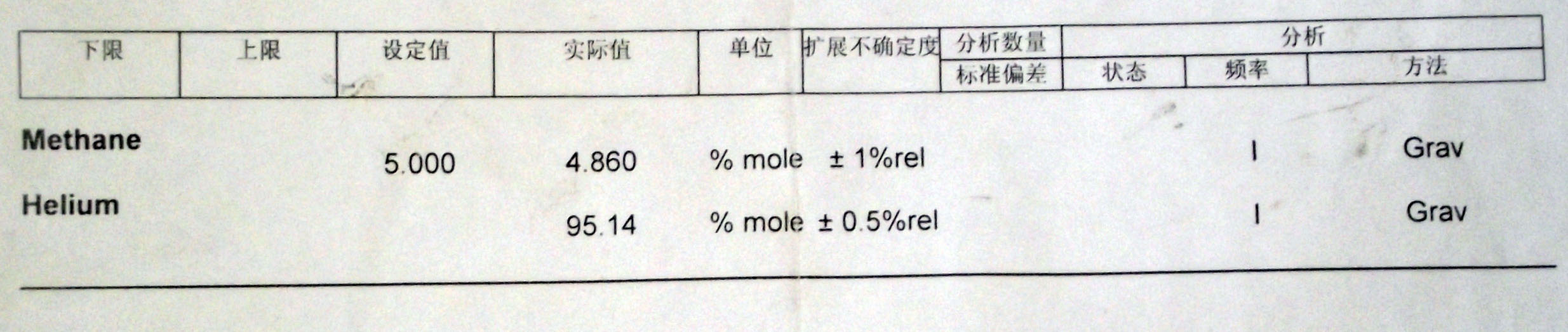 先前仪器配了一瓶甲烷和氦气的混合气,北京氦普北分气体工业有限公司生产的,说明书上说比例是5%,见下图。从图中,我看不出来他们说的比例是体积比还是质量比?不知道虫友里有能看出来的吗?