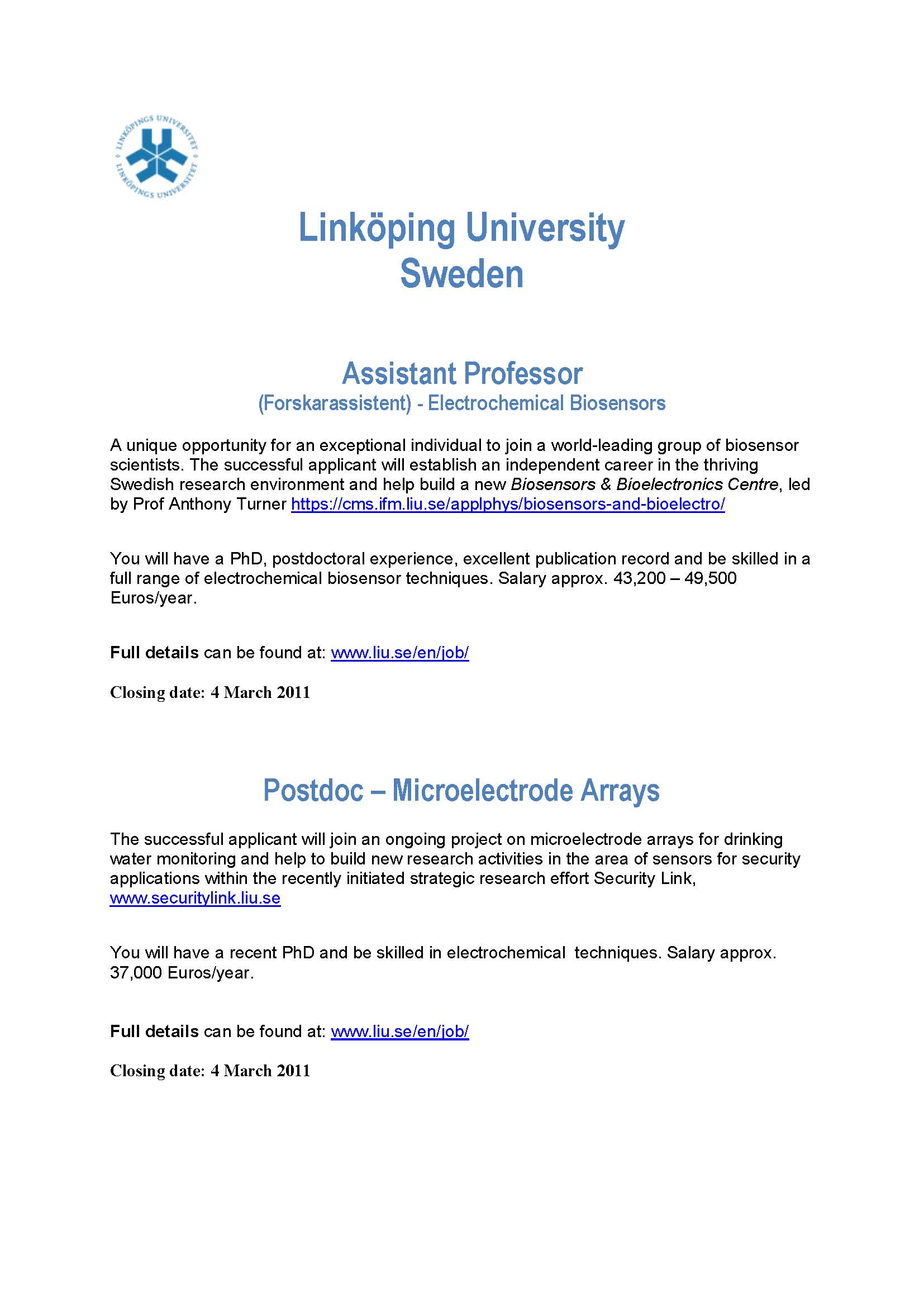 【交流】生物电分析助理教授和博士后岗位 已有3人参与
