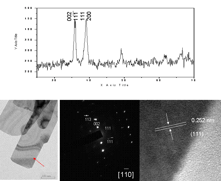 1. 高分辨的那个d值应该在0.27 nm左右,对应(110)倒是合适,但没有二维晶格,不好很准确的确定晶相和晶面