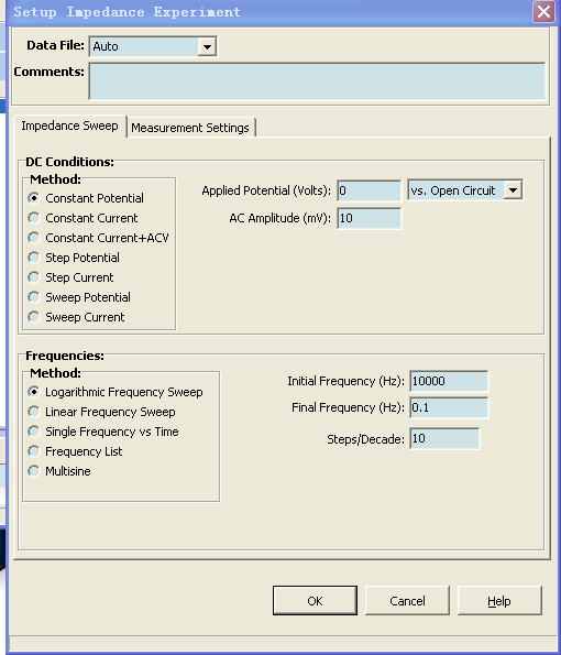 【求助】求用IM6电化学工作站测试电池的交流阻抗时候如何设置参数?
