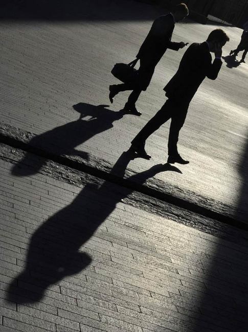 An office worker walks through the London Place business district near Tower Bridge in central London Feb 9, 2011. |