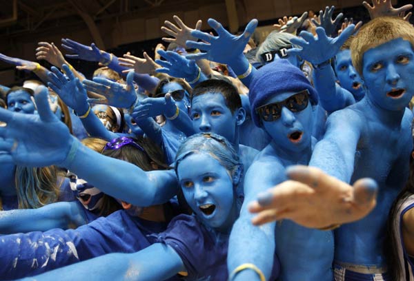 Duke University fans cheer on their team before the NCAA game against the University of North Carolina at Chapel Hill in Durham, North Carolina Feb 9, 2011.