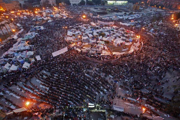 Opposition supporters pray and move around Tahrir Square in Cairo Feb 9, 2011.