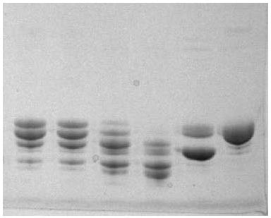 本实验室构建的酵母分泌表达重组牛肠激酶轻连,发酵上清经超滤浓缩后未纯化,直接酶切融合蛋白,发现有很严重的非特异性酶切,请问纯化对重组肠激酶的特异性有影响吗? 图片如下: 从左到右Ek酶浓度逐步增大,右数第二个为商品购买的Ek酶切结果,右边第一个为未加Ek的对照, 望各位有经验的战友多多指教 |