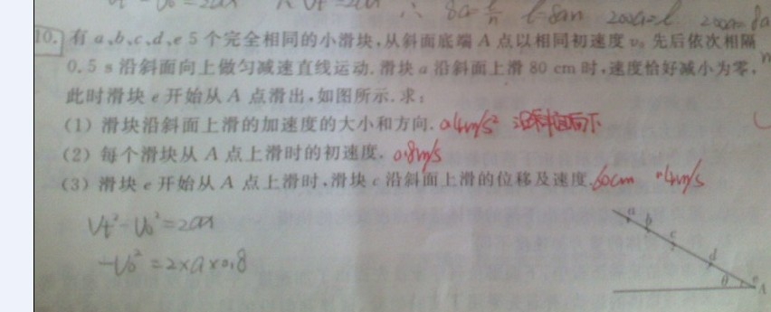 当a走80cm后速度减为0,此是e开始滑,说明a运动了2s