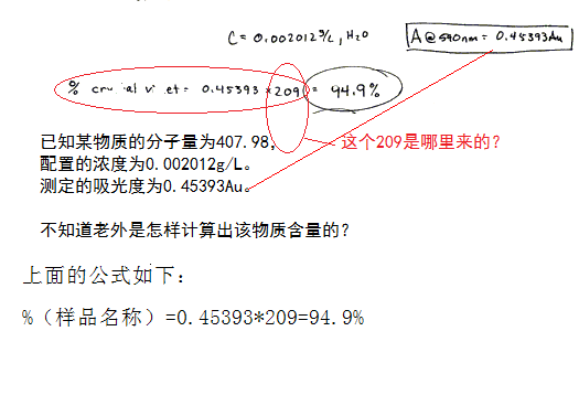一个用紫外光谱计算含量的问题。 如图,只有这些已知条件,不知道老外是怎样计算得到样品含量的? 谢谢2楼提醒。 [ Last edited by wwweeerrr on 2011-2-16 at 19:54 ] |