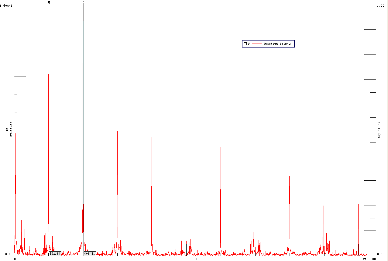 最大振动的频率在基频的2倍倍频处,其次是在基频处。