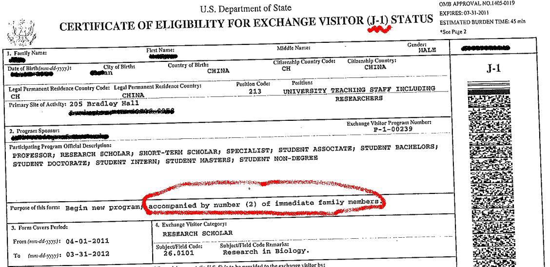 我申请的时候提交了一家三口的资料,并申请了2个J2 但是收到的DS2019表只有1个J1的(见下图),表上注明了“accompanied by 2 family member” 但是没有J2的DS2019表。 请问:只要这一份DS2019可以申请全家三口的visa吗? |