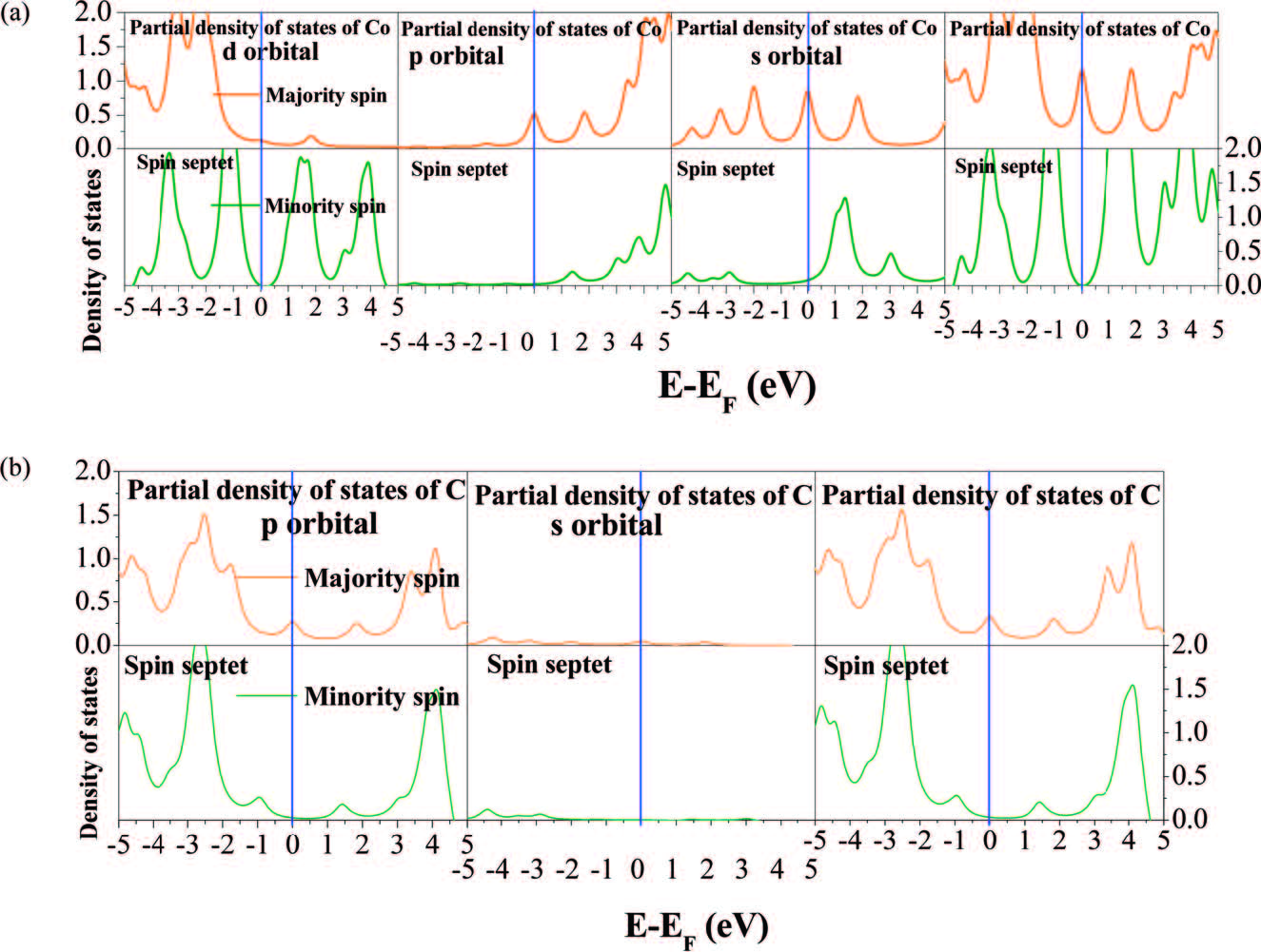Eg:图中所示的Two-Probe体系PDOS图,费米能级处主要贡献来自于Co的s轨道和p轨道。