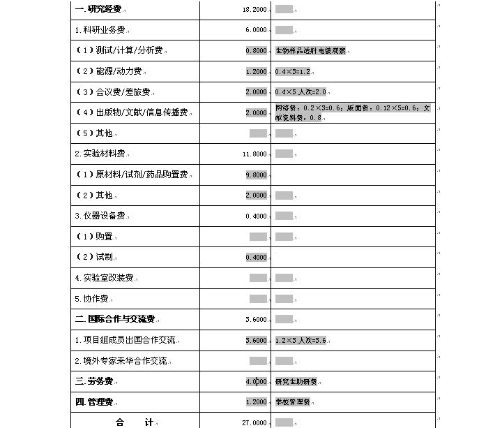填写《国家自然科学基金资助项目计划书-经费预算表》---青基
