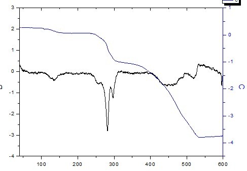 我所做的DTA是在氮气气氛下做的,所用的物质是一种配合物所形成的固体,属于分子筛类型的结构吧。
