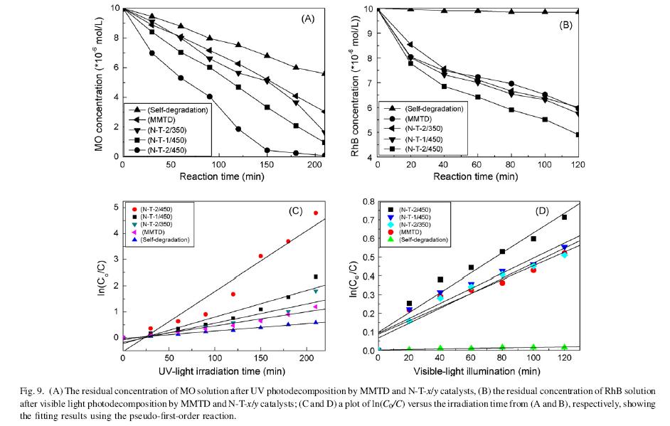 Preparation and photocatalytic activity of hierarchically mesoporous-macroporous TiO2xNx这篇文章中(图9,其中MMTC代表未掺杂的宏孔/介孔TiO2),对于未掺杂的氧化钛,在可见光范围内对于罗丹明B降解仍然有效,怎么回事呀?