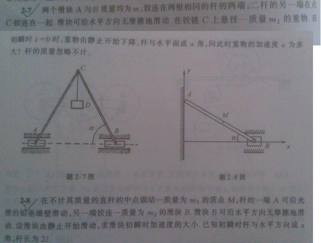 由于本人不是力学专业,有谁懂《分析力学》的,请帮我解下面两道题。我先给出答案: 解对的请把解答过程用任何形式发给我(word,相片,等等) s.w.i.m@163.com 或直接在这里把解题过程贴图出来。谢谢 7题:加速度A=(m1*g)/(m1+2m*tan^2a) 8题:加速度A=(m1*g*sin2a)/(m1+4m2*sin^2a) 解对的将获得全部得分,必要的话可以再添加。 [ Last edited by swim8568 on 2011-2-26 at 17:26 ] |