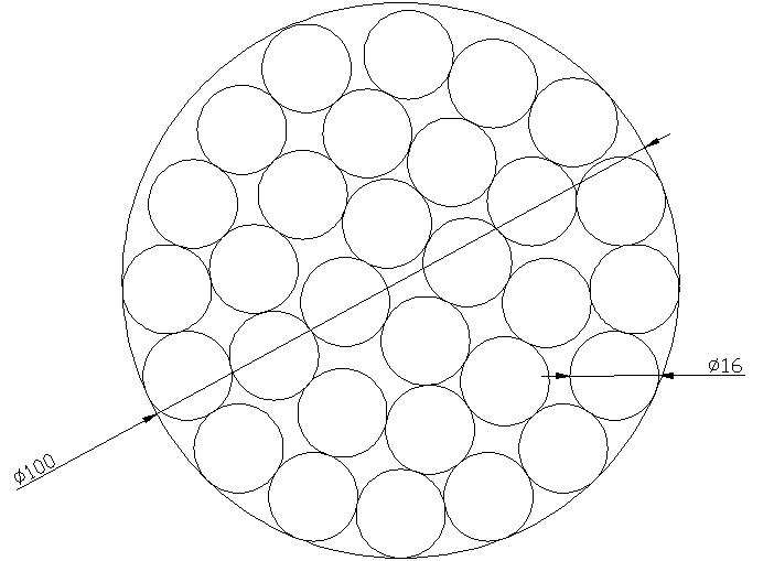 有一个直径为100cm的圆柱体,最多可以向里面填装多少个直接为16cm的圆柱体 麻烦说明下如何解