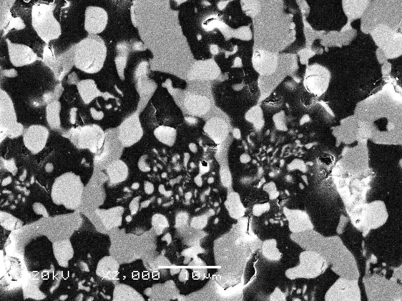 图为铸造方法得到的三元显微组织,材料为AlO/ZrO/YO三元共晶成分,但是得到的组织不是共晶组织。大家帮忙看看图中组织属于什么类型的凝固组织?