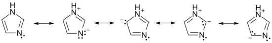 碱性条件下,咪唑环是能带负电的。如图中的共振结构所示: