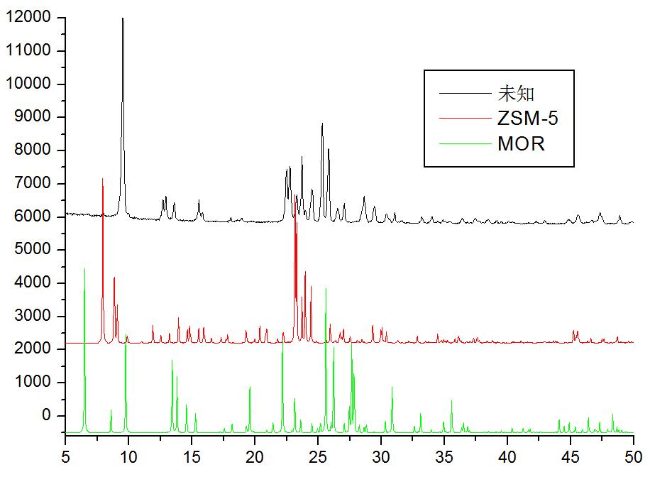 最近做ZSM-5,将SiO2/Al2O3降低到20时,合成的样品XRD图见附图,而SiO2/Al2O3为40及以上时,样品为ZSM-5。