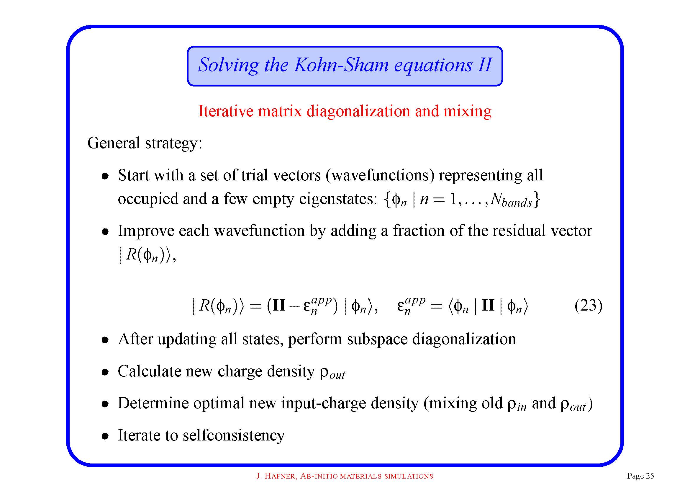第二步弄迭代残余矢量的时候,是不是哈密顿要用第一步得出新的波函数来重新构建,E是上一步得出来的,这样就会产生残余矢量。进而得出有一个新的波函数。
