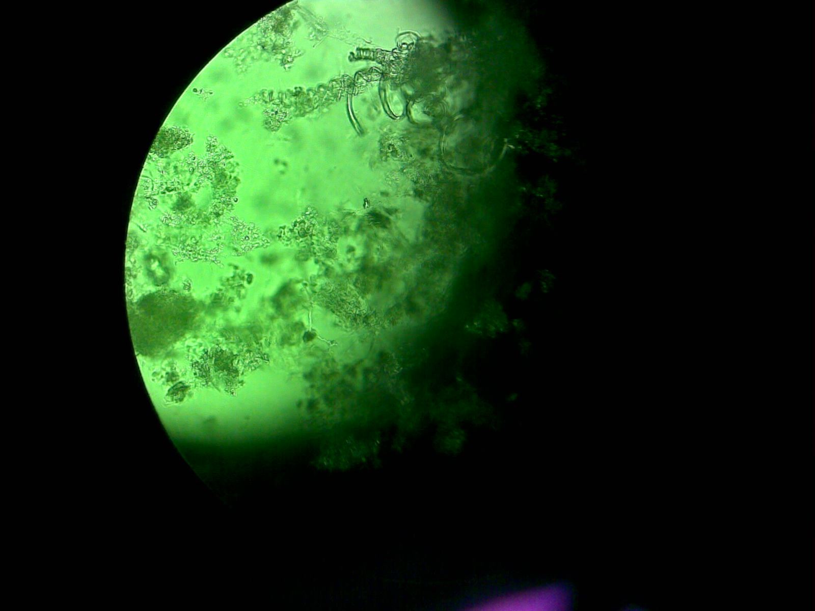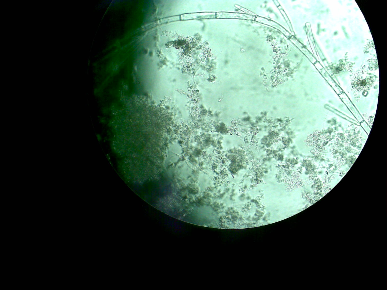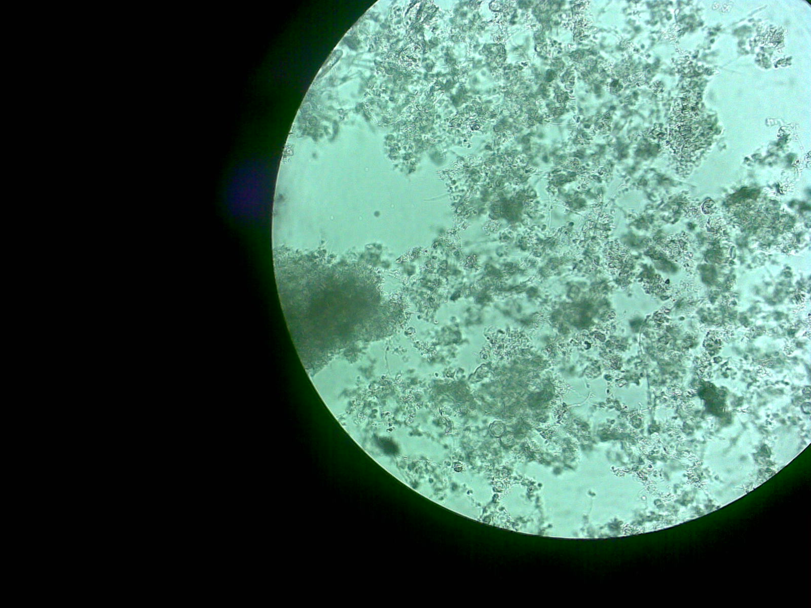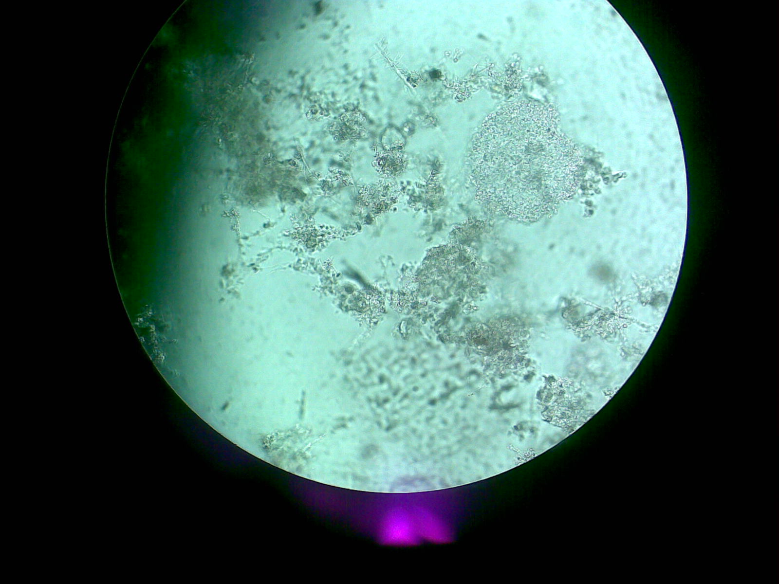 普通的污泥里面 丝状菌并没有成片或者成团存在 但在膨胀的污泥里面就经常会看到整团的污泥都是丝状菌的