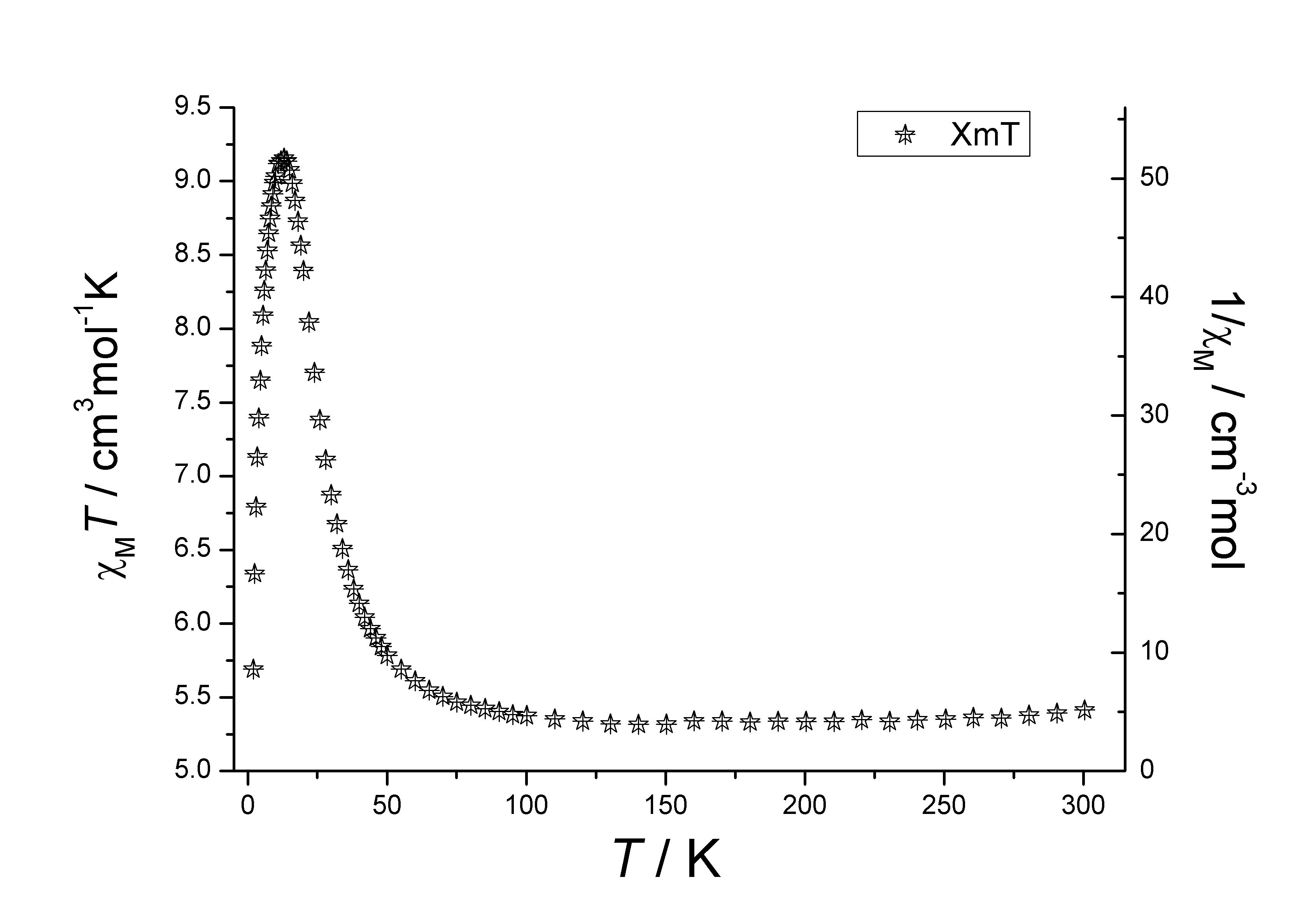 请求帮助,我想将XmT-T和 1/Xm-T画在同一张图里面,怎样在origin 8.0中画出呢?