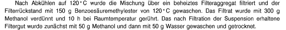 冷却到120度之后,混合物用可加热的过滤装置热过滤,滤渣用150g加热到120度的苯甲酸甲酯洗涤。滤液用300g甲醇稀释,于室温搅拌10小时。过滤此悬浮物所得的滤饼先用50g甲醇然后用50g水洗涤,干燥。