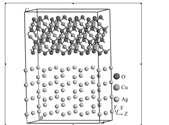 求助:材料表面复合建模具体步骤,类似于下面图形。是Ag和CuO2界面复合
