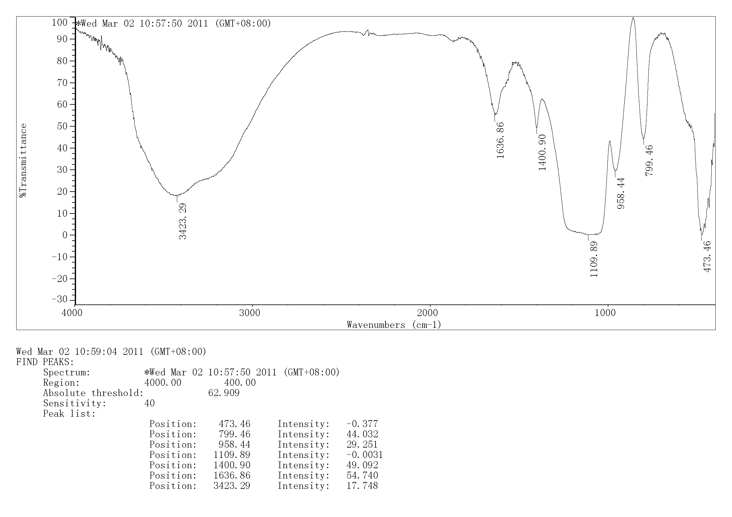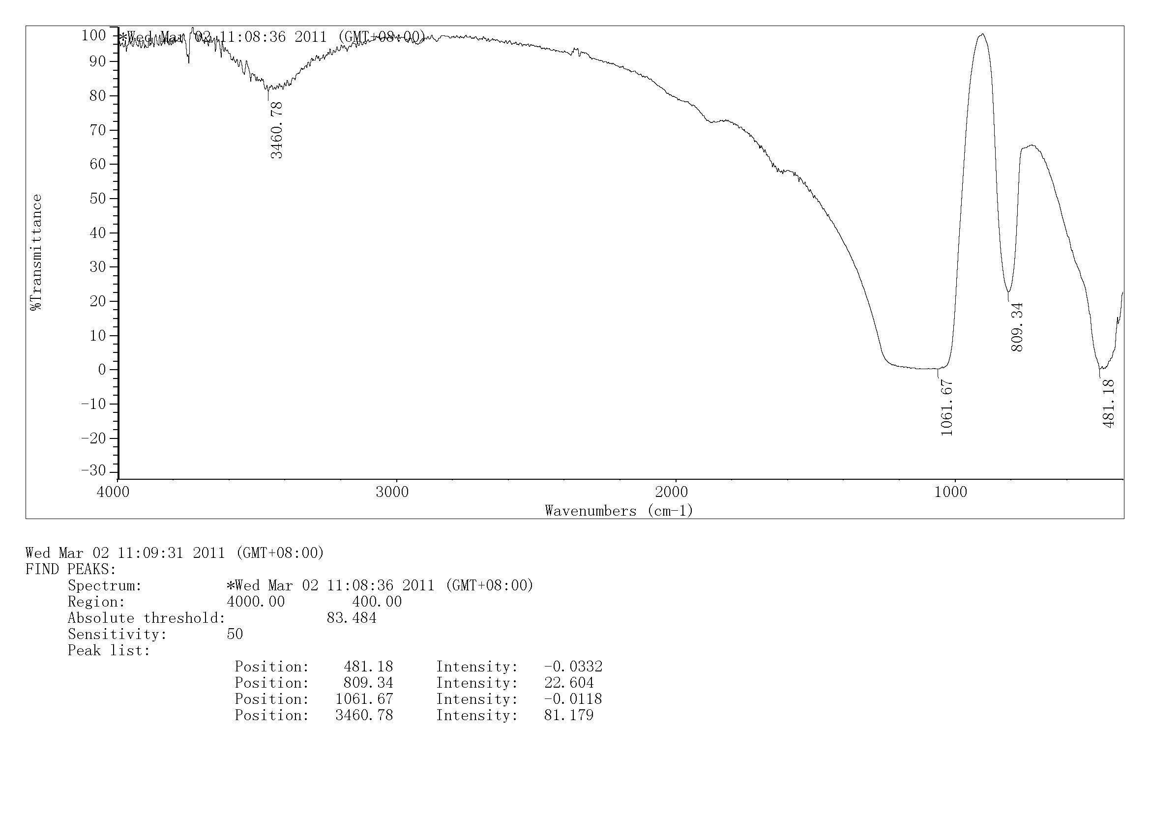 文献中的红外谱图在960cm-1出有指纹区,我做的二氧化硅中只干燥没煅烧的样品中有指纹区(上图)但是经过煅烧的样品(下图)在指纹区却没有峰出现,这是怎么回事呢?