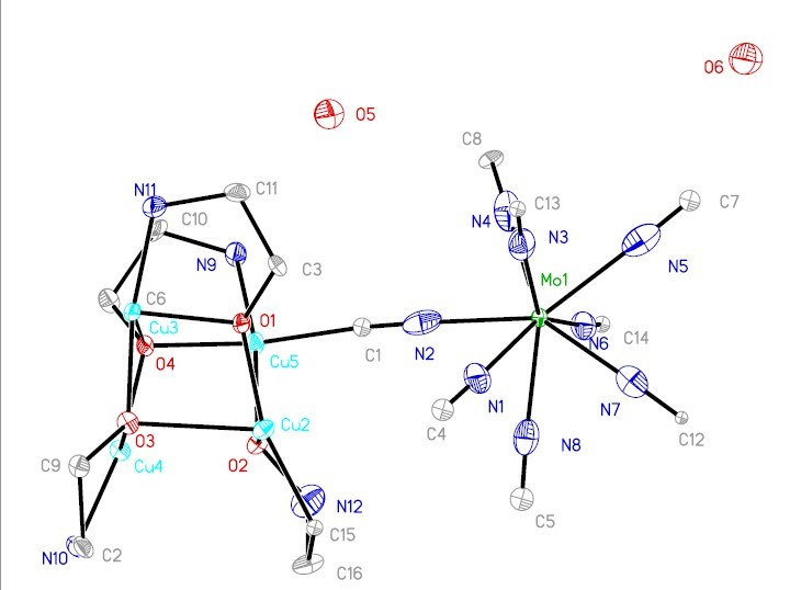 那个是乙腈分子么?是不是Mo和Cu比较重 C很轻造成的 做做吸收校正看看?