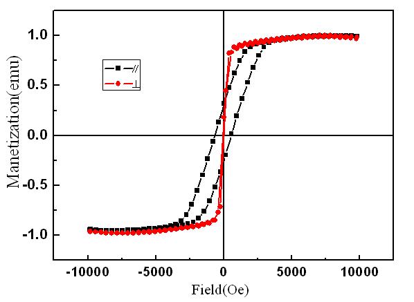 tem和sem上拍的图片都有Fe纳米线;一般情况下平行纳米线的方向应该是易磁化轴,可是我们这个正好相反,而且垂直纳米线方向矫顽力那么小。郁闷!不知道怎么回事。