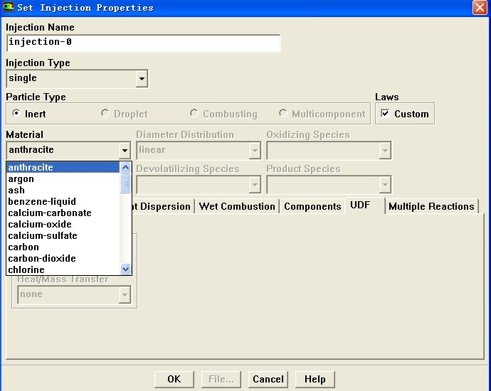 DPM模型中只有给定的哪几种物质啊,如果是其他没有的物质是不是就要对粒子的性质进行的定义,但是又没有相关的选项啊,比如离散相粒子的粘度,密度,表面张力等