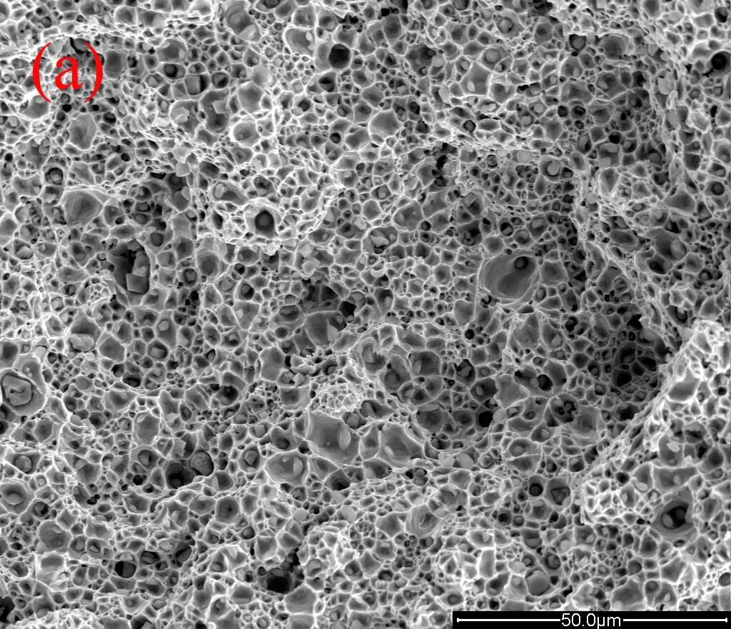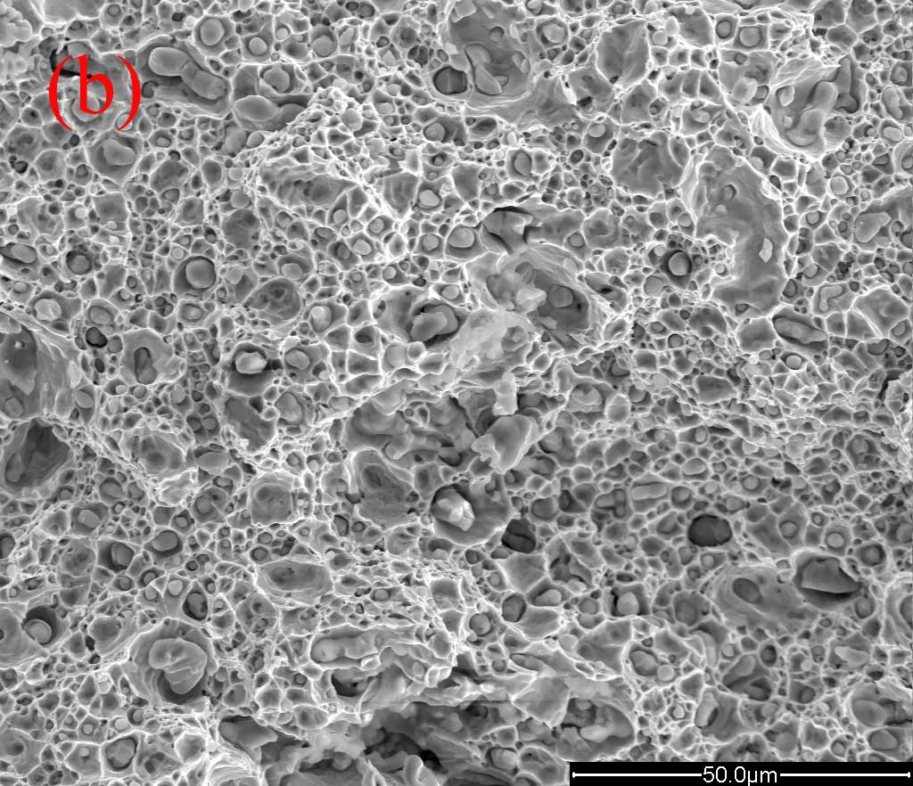两者韧窝尺寸相当,但是第一个深韧窝较多,夹杂物尺寸较小,这些可能表现为高塑性!