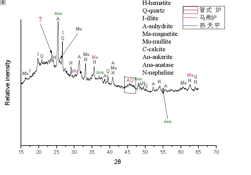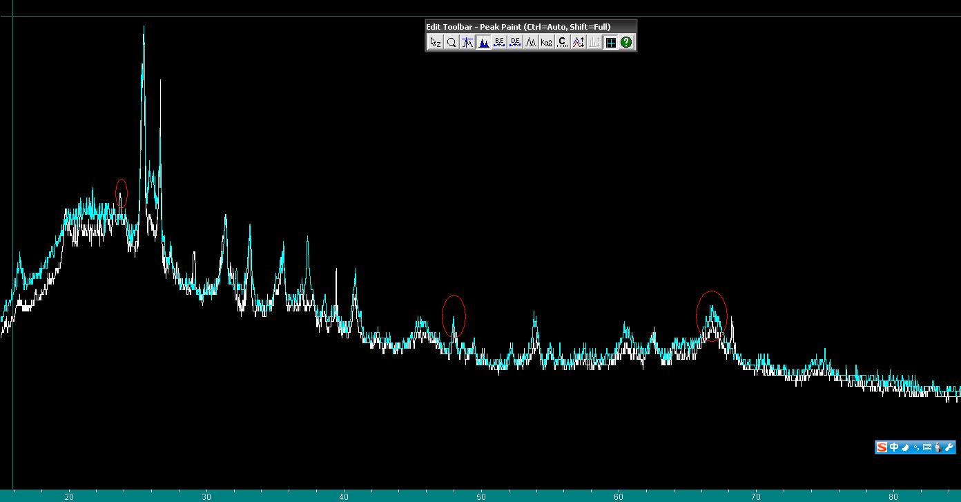 如下图所示,白色的是利用热天平烧的灰样,升温速率是20度/分钟,终温800度;青色的是利用管式炉烧的灰样,只不过是待炉温稳定到800度后才讲煤粉放入其中。二者似乎有些不同,难道是因为反应条件的差异?但是两者终温都是800度啊,煤灰的物相似乎不应该受升温速率的影响啊~ 另外图中红圈位置处的物相小弟也没检索出,希望知道的朋友帮帮忙~~~ |