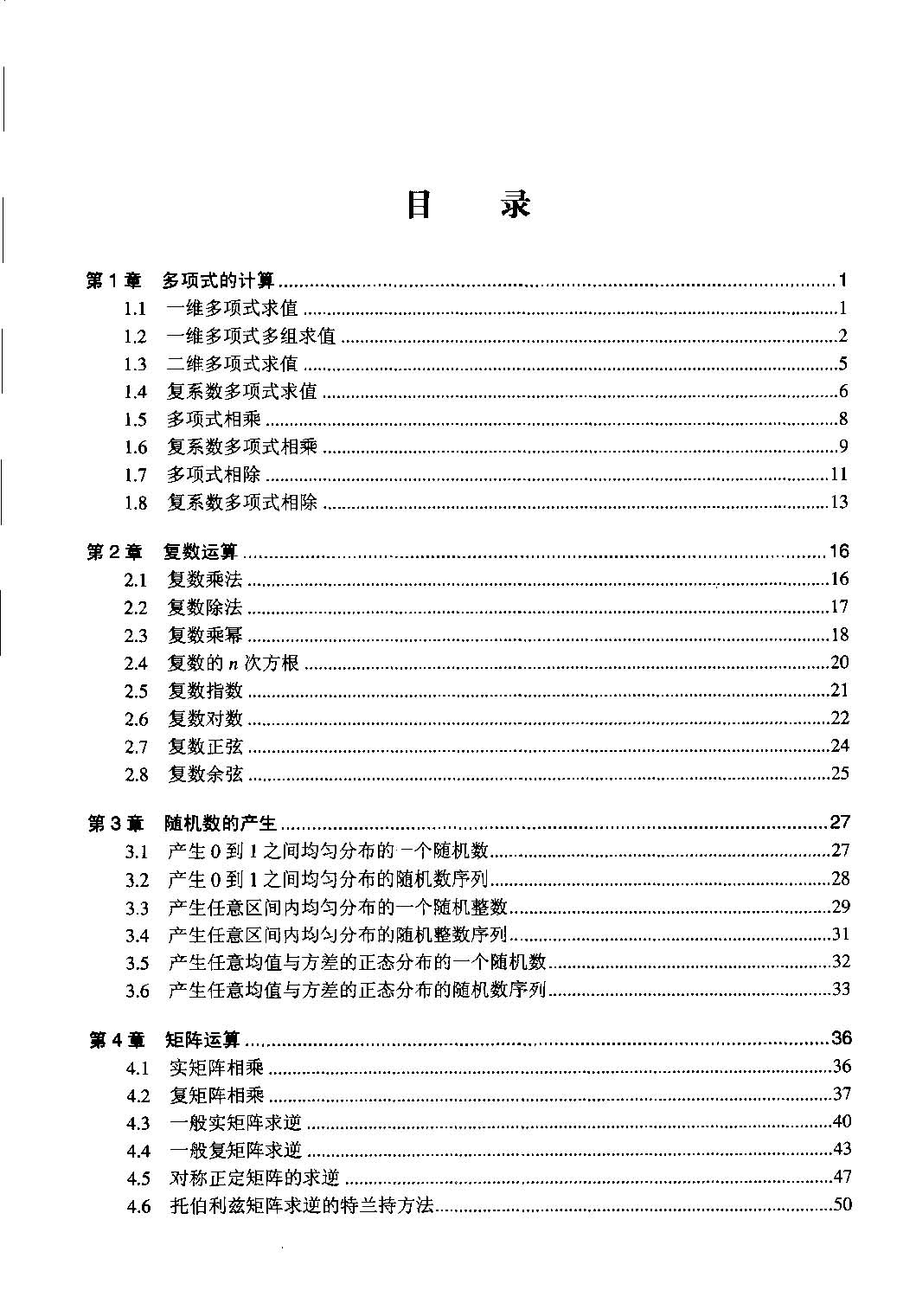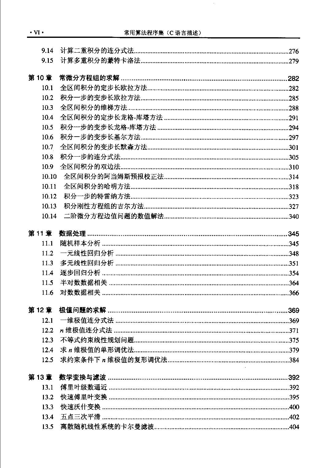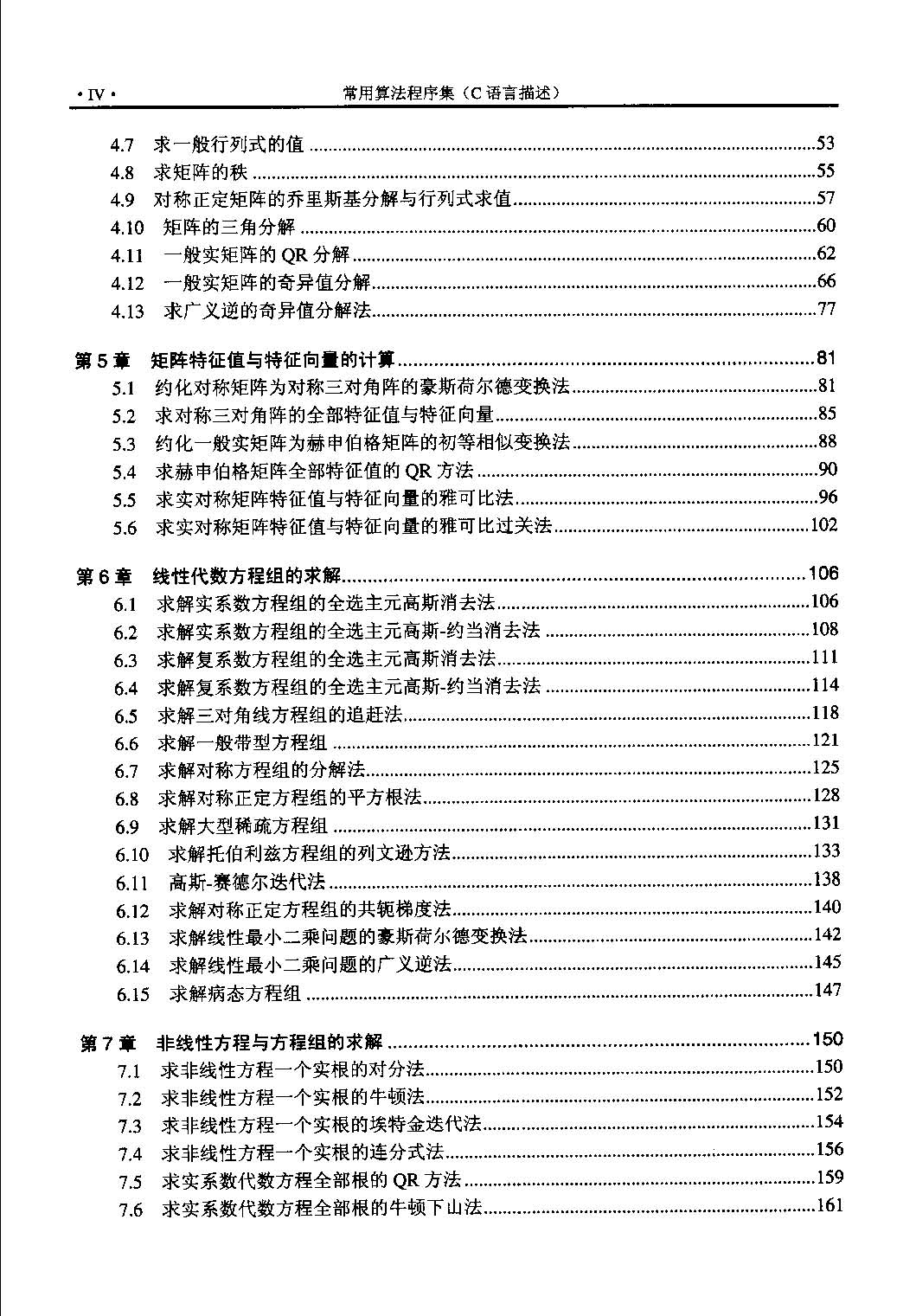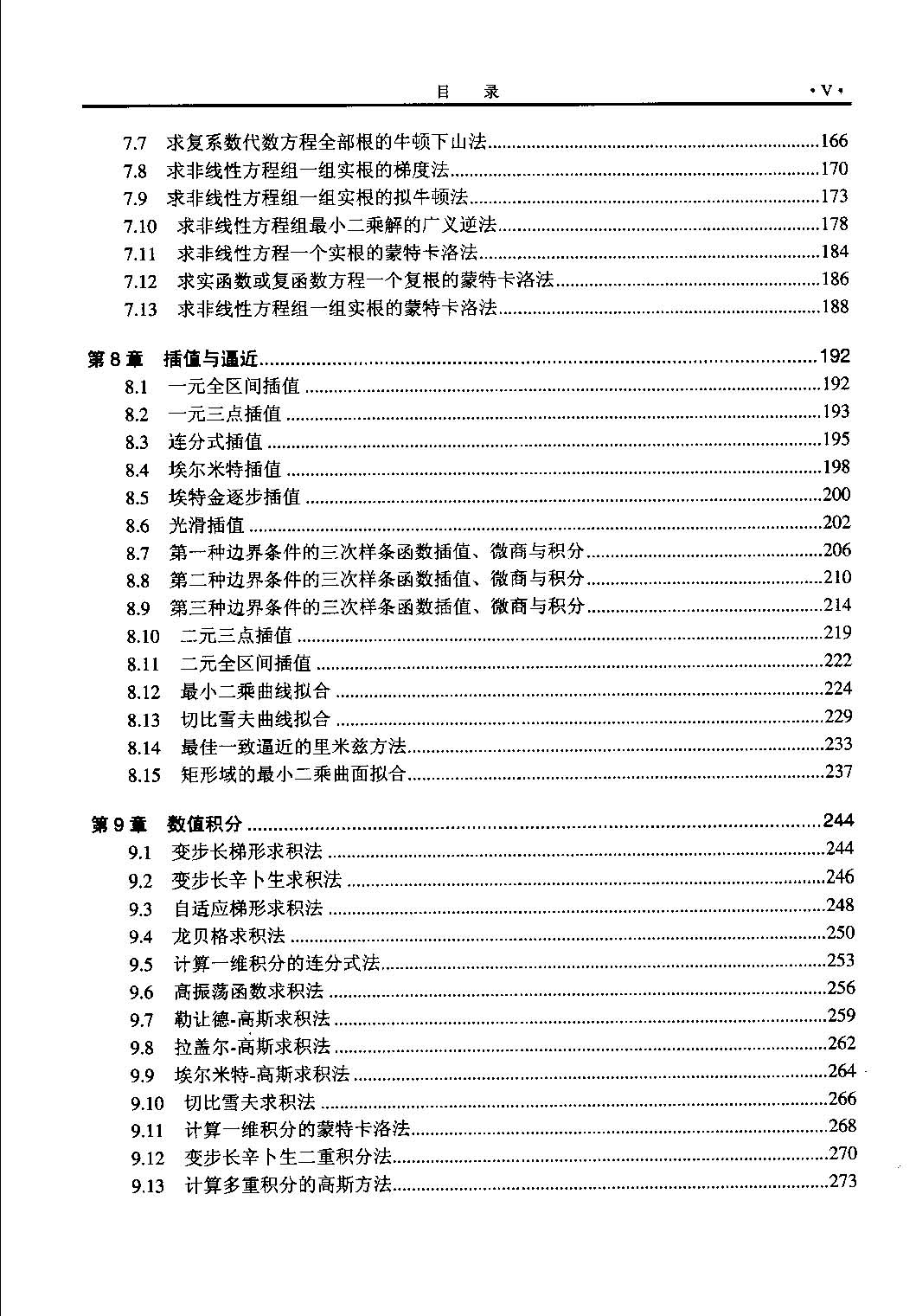 (站内搜索了一下,貌似某个同样的资源,但下面回帖说发的是病毒,所以发一下这个。估计对大家有用。) 清华大学编的比较实用的C源代码集与电子书,面向C语言的数值计算,内容包括: 1. 多项式计算 2. 复数计算 3. 随机数生成 4. 矩阵计算:实、复矩阵的逆,QR分解,奇异值分解SVD等 5. 矩阵特征值与特征向量 6. 线性方程组求解 7. 非线性方程组求解 8. 插值与逼近 9. 数值积分 10. 常微分方程组求解 11. 回归分析 12. 极值问题 13. 数学变换及滤波 14. 一些特殊函数的计算 15. 排序 16. 查找 具体各章内容就不多介绍啦,总之是非常实用的东西! 遗憾的是代码写的可读性比较糟糕(纠结的变量名和缩进=,=),还有就是感觉代码的书写水平不够纯熟,而且是用老式的C代码(稍微修改函数声明定义就能在新编译器中通过),不过这些不影响这个代码库的价值~ 使用方法:先在PDF里面找到需要的代码,再到各章文件夹下面找就OK了. |
