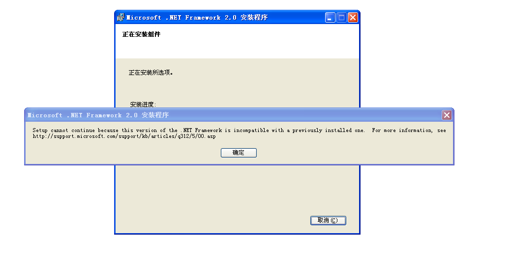 添加和删除程序里找到版本低的net framework,删除程序然后安装2.0的试试