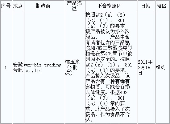 【转载】2011年2月美国FDA拒绝进口我国食品情况 已有2人参与