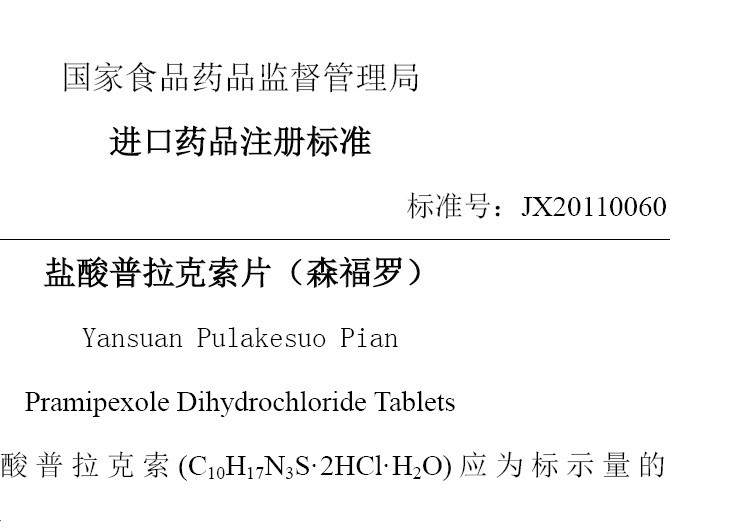 盐酸普拉克索片进口标准JX20070241