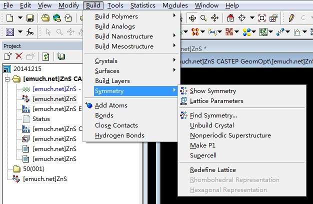 请问一下,是CO在Pd上吸附的那个教材吗? 它上面有句话:当工作结束的时候,必须把原始晶胞计算结果转换回传统晶胞的表达形式。这个具体怎么操作呢?我按它说的用Build | Symmetry | Conventional Cell 怎么点不了呢 希望帮帮忙,!!!!